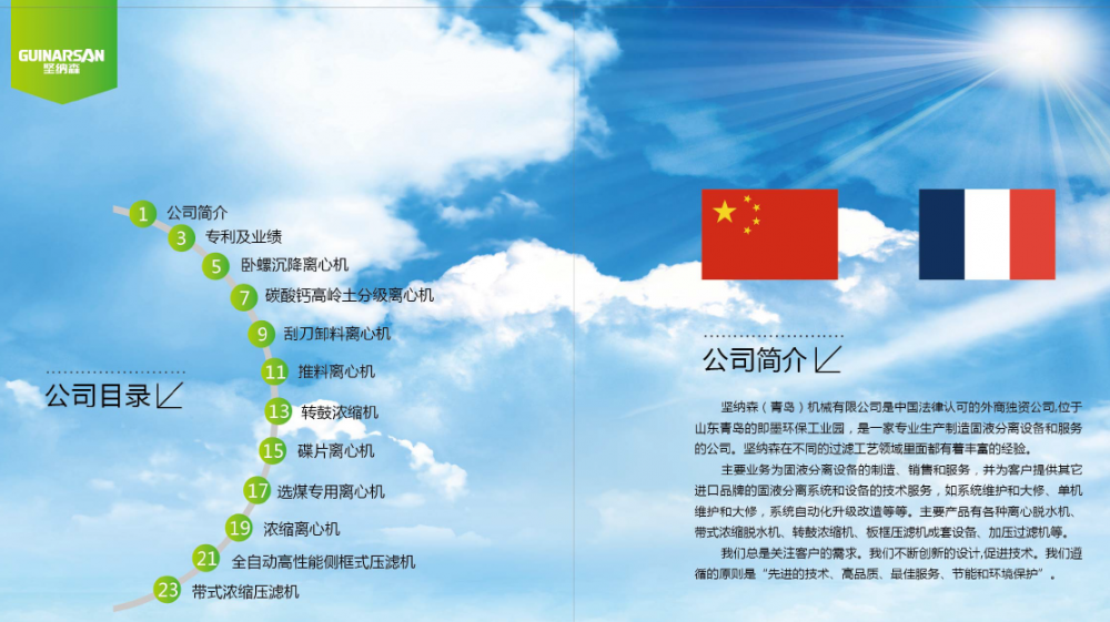 堅(jiān)納森(青島)機(jī)械有限公司,專注于固液分離設(shè)備的制造與服務(wù),公司主要產(chǎn)品有:各種規(guī)格離心脫水機(jī)、帶式濃縮脫水機(jī)、轉(zhuǎn)鼓濃縮機(jī)、板框壓濾機(jī)成套設(shè)備、加壓過(guò)濾機(jī)等。